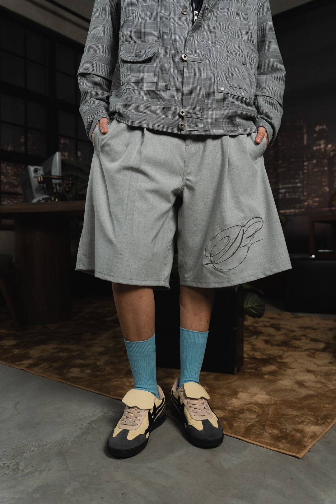 CALLIGRAPHY PLEATED SHORT LIGHT GRAY