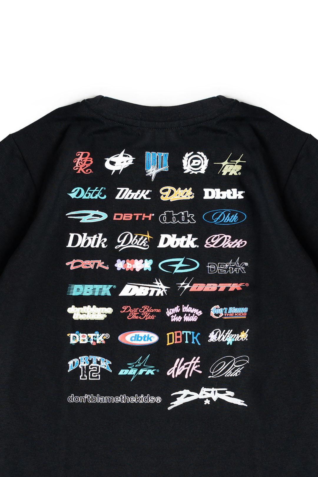 Made for kids from the Kids. The DBTK Mini Logo Tee 2.0 features a new set of curated DBTK logos, each designed with its own style, texture, and personality. Both front and back carries a full screen-printed composition of curated DBTK logos.